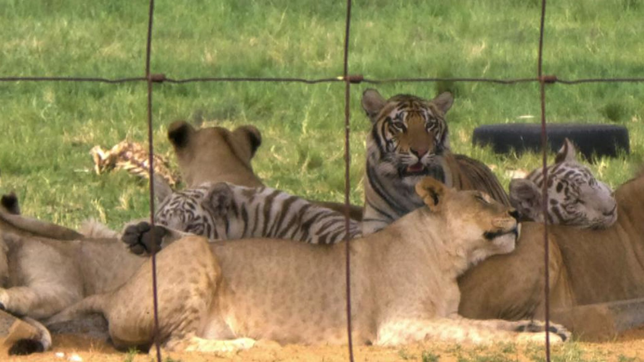 Tigers and lions are pictured as their captors breed them together. Pic: Lord Ashcroft