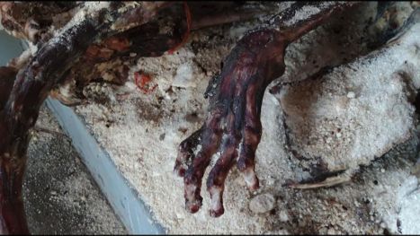 “A pile of innards and skeletons lay elsewhere inside. While discarded internal body parts were piled high in overflowing black plastic bags on a trailer outside.”