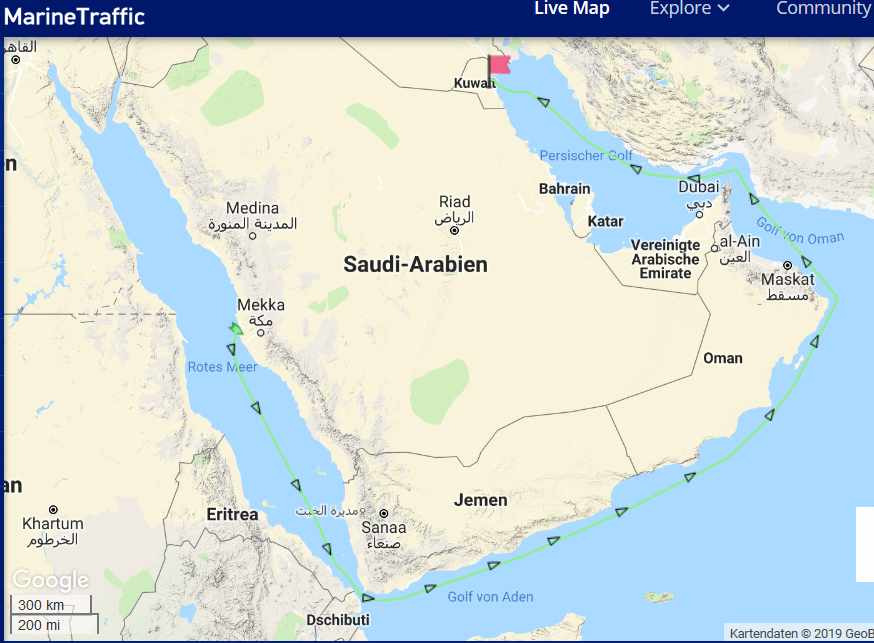 The Al Shuwaikh which is destined for Kuwait on 3/8 is currently moored at Jebel Ali – near to the Jebel Ali Industrial Area; Near to Dubai in the United Arab Emirates.