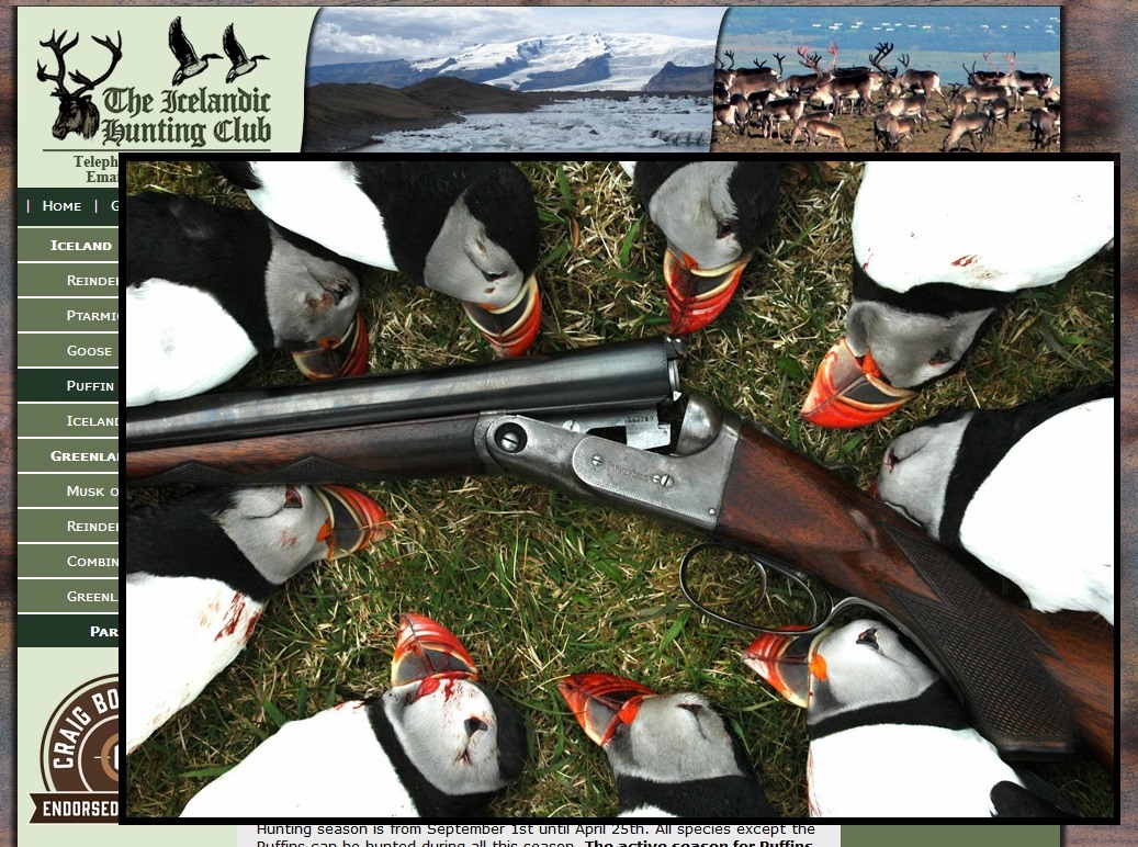 The picture shows the screenshot of an Icelandic hunting agency, which advertises big “routes” in the puffin hunt.