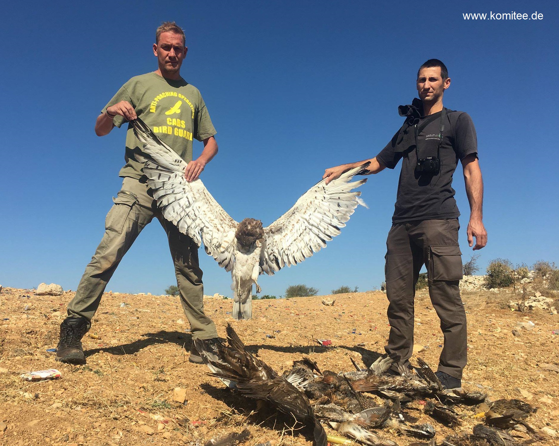 One of the owls was still alive, but died shortly thereafter of their serious injuries. The committee and its partners SPNL have today called on the government to significantly expand its efforts against poaching to tackle this ecological catastrophe!