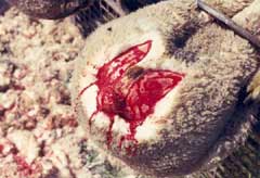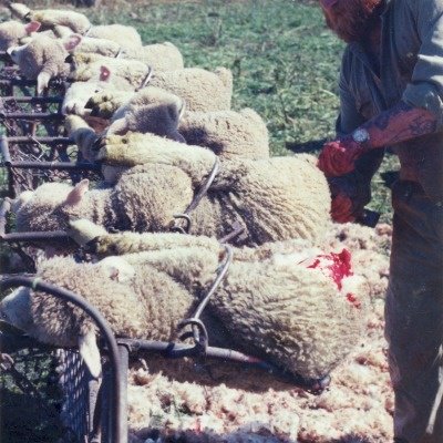 Mulesing is undertaken by Australian sheep farmers. It has now been banned in New Zealand.