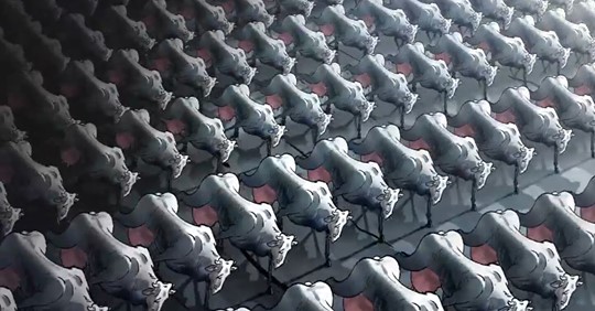 You see a whole army of mechanical cows.
