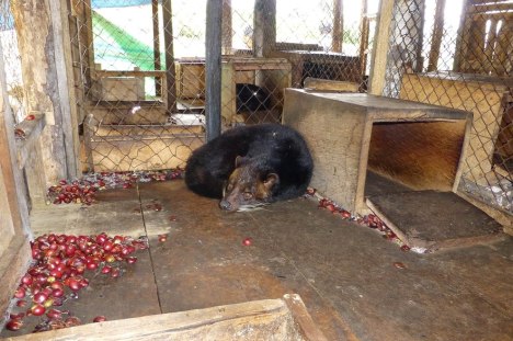 The civets are denied their natural diet, are constantly overfed coffee beans, and have no opportunity to know freedom.