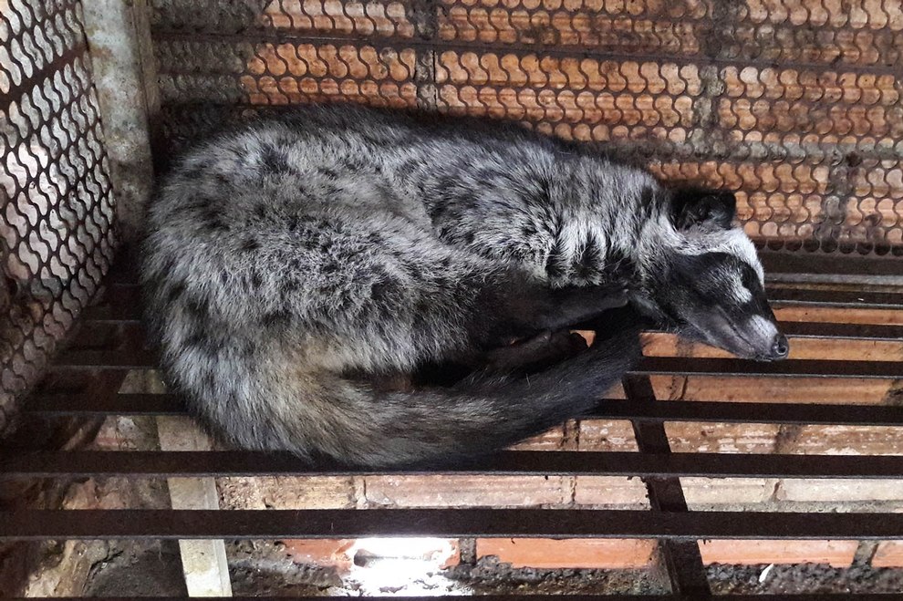 The civets are denied their natural diet, are constantly overfed coffee beans, and have no opportunity to know freedom.