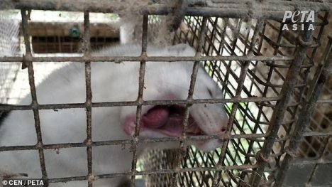 A caged mink at a Russian fur farm. The shocking images were taken during a PETA sting into the Russian fur trade and shows chinchillas having their necks snapped