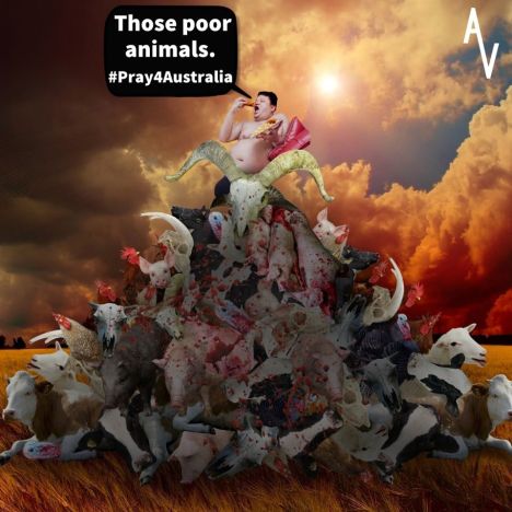 A pig doesn’t want to be in a gas chamber any more than a koala wants to be in a burning tree. Will you be consistent and end your complicity in this? Or will you turn a blind eye to the very suffering you are responsible for and focus only on the events deemed “newsworthy”?