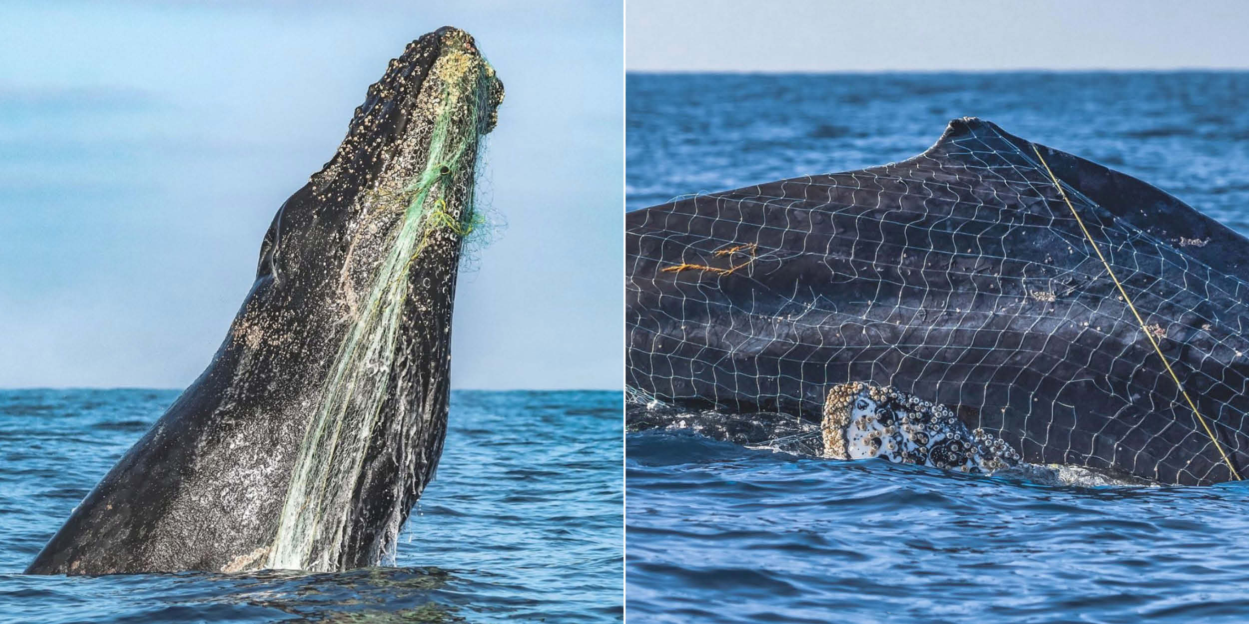 On Feb. 14 a whale watching company spotted a humpback whale tangled in a net, struggling as it swam up the California coast from San Diego. The whale was severely entangled in drift gillnet: a barbaric method of commercial fishing that should not exist. Unfortunately, crews who initially spotted the whale were unable to help the whale which was active at a frantic pace—it was too dangerous to get close to the animal. Now, the Coast Guard and the West Coast Whale Entanglement Response Program are closely tracking the whale to attempt to safely remove the netting. It was last spotted outside of Dana Point. Although the netting still has the right fluke entangled, if appears that whale has been able to discard some of the net.