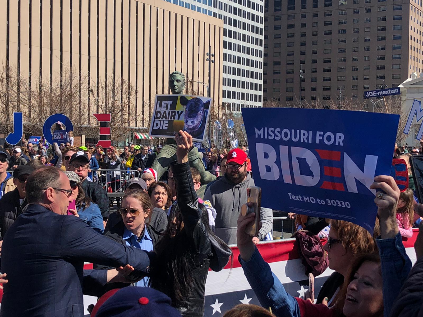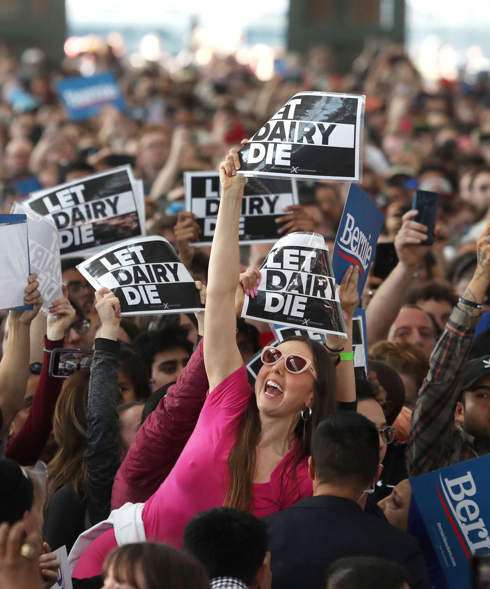 Women with posters that read “LET DAIRY DIE” protested while Biden was confident about his chances of winning.