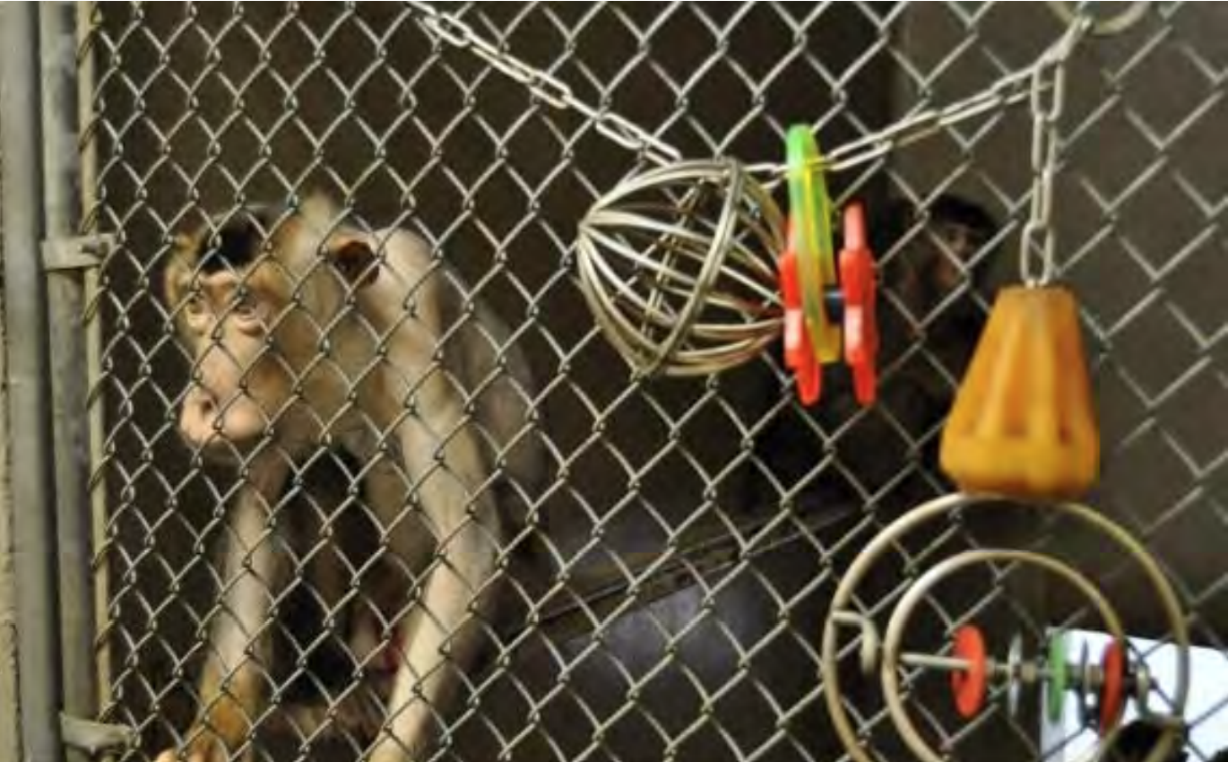 Kept in these austere settings, monkeys may suffer from psychological trauma.