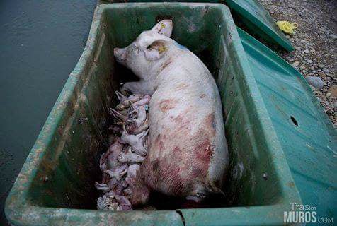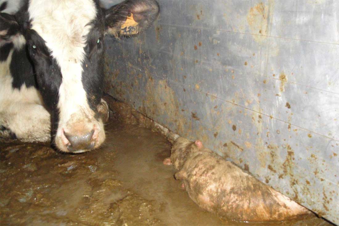 They find it completely ok to put pigs in cages for 4 months, in which they cannot turn around, mothers take away their children, kill excess piglets and if they have exploited cows enough, they let them die without help or they sell the, illegal, in order to make the last money again.
