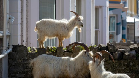 The goats normally spend their time on the Great Orme but have been spotted on the streets of Llandudno, north Wales, where the residents are in lockdown during the coronavirus pandemic.