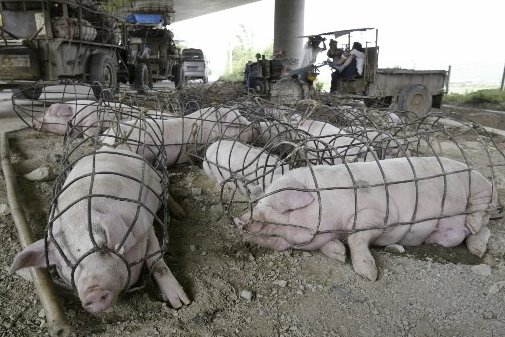 This picture is from 2007 and belongs to a report about a mysterious pig death in southern China: