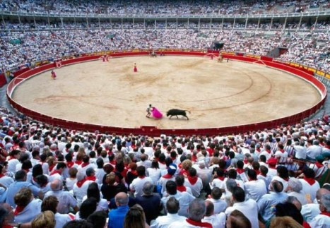 The arena’s visitors, who enjoy the animal’s suffering, reward each painful blow with the lance that pierces the bull into the flesh with Olé calls.
