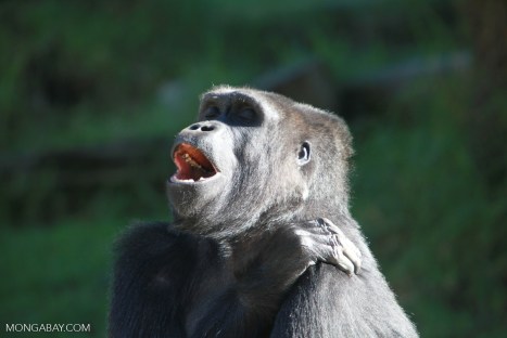 The Ebo forest is home to a mystery population of gorillas, only discovered by scientists in 2002. Two subspecies of gorilla are found in Cameroon, the Western lowland gorilla (Gorilla gorilla gorilla) and a small population of Cross River gorillas (Gorilla Gorilla diehli). Between these two populations, there is a third isolated Ebo population, completely cut-off from other sub-species, with no other populations found within a 200 kilometer (125 mile) radius. Photo by Rhett A. Butler