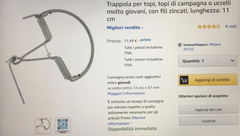 The great success has the downer that it is limited to Italy – in Germany and almost all other EU countries you can continue to manufacture, sell, and own prohibited bird traps.