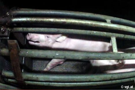“The pigs go down in a gondola in over 90 percent CO2 gas. It usually takes 20 to 30 seconds until the animals are unconscious.
