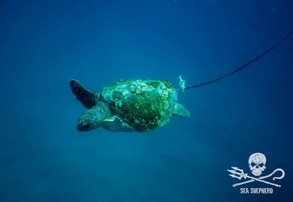 This is the story of “Beckie”, an endangered loggerhead sea turtle that was saved by our crew. When we found her, she was already very exhausted and the hook was stuck in her side. We were able to get her for medical treatment on board immediately so that her injuries could be properly treated.
