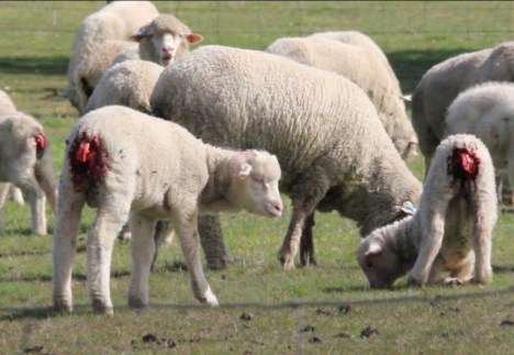 But the fluffy lambs have natural enemies. Flies that lay their eggs in the many folds of skin around the lamb’s butts. Parasites.