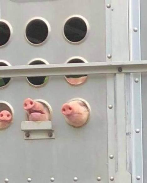 It was a little after 10 am as another truck carrying pigs appeared on the horizon, but something was off. Though the truck would be turning right onto a service road, the driver remained in the left lane, not moving, holding up traffic for several light-cycles.