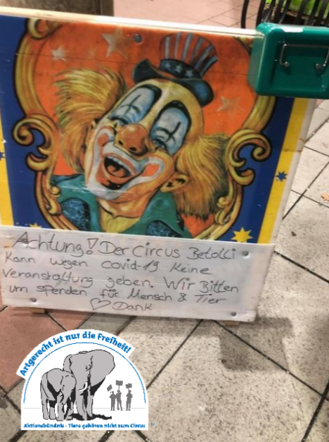 “Attention! The Betolli Circus cannot hold an event due to Covid-19. We ask for donations for humans and animals