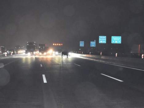 A calf that jumped onto the road from an animal transporter caused a stir on the german autobahn on December 9th.
