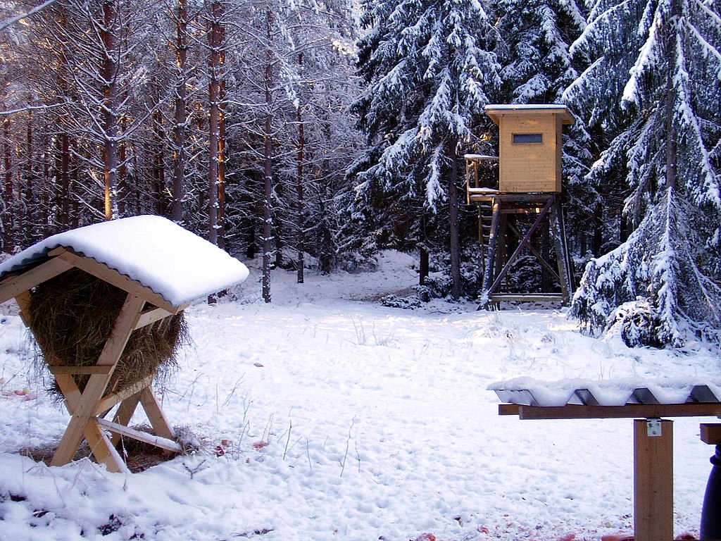 These “salt licks” are nothing more than bait that the hunters put in front of the high seats so that the future victims get used to them and visit the site regularly.