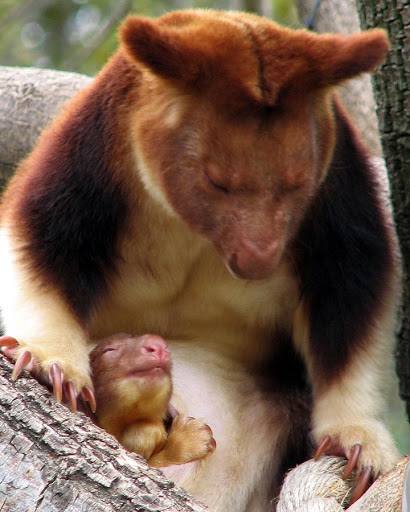 They have bear-like claws so that they can hold on to the trees. The fur colors also vary depending on the species. There are tree kangaroos with black, gray or gray-brown, red or even white fur.