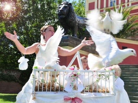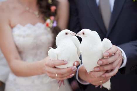 In contrast to carrier pigeons, wedding pigeons are not allowed any training flights before their big performance.
