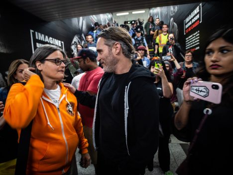 Anita Krajnc, founder of Toronto Pig Save, and Joaquin Phoenix to attend a protest, September 2019-photo by Joanne McArthur