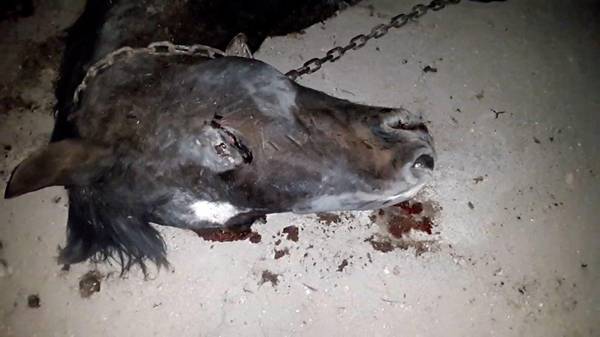 Nobody can explain to us why this additional torture is. We see workers kicking the horses lying on the ground in the face or pressing their heads down with their feet in order to start the bolt shot again”.