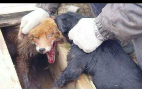 As can be seen, wires are driven through the joints of foxes so that they cannot escape and defend themselves properly.