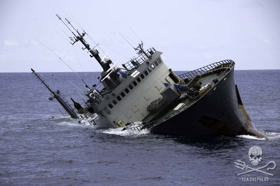A 110-day Sea Shepherd chase of the world’s most notorious poaching vessel has ended in dramatic and deliberate scuttling in a remote area near the equator.