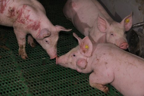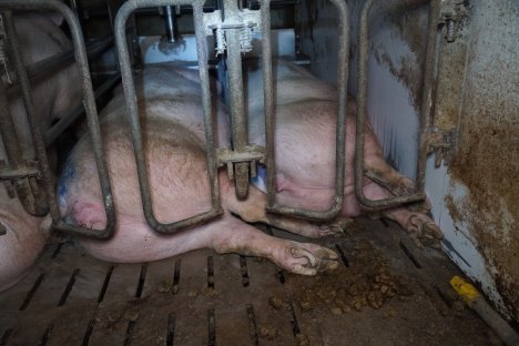 Between 150 and 200 mother sows are kept here for life in crates and on fully slatted floors.