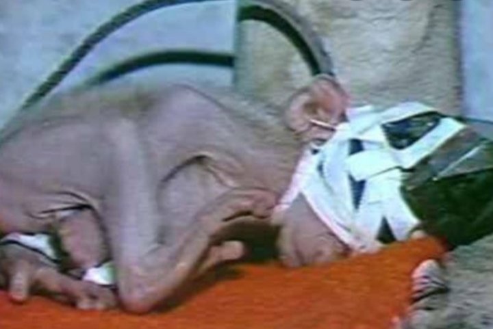 The little monkey was painfully separated from its mother when it was born.