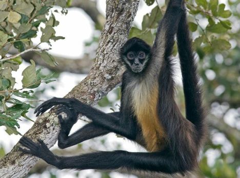 Spider monkeys are diurnal tree dwellers and prefer to stay in the upper crown area.