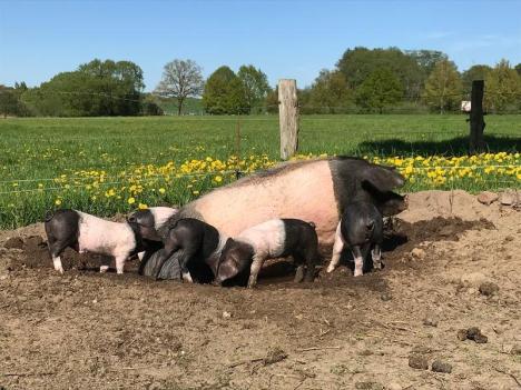 But: they live with one of the few farmers in this country who keeps pigs free.