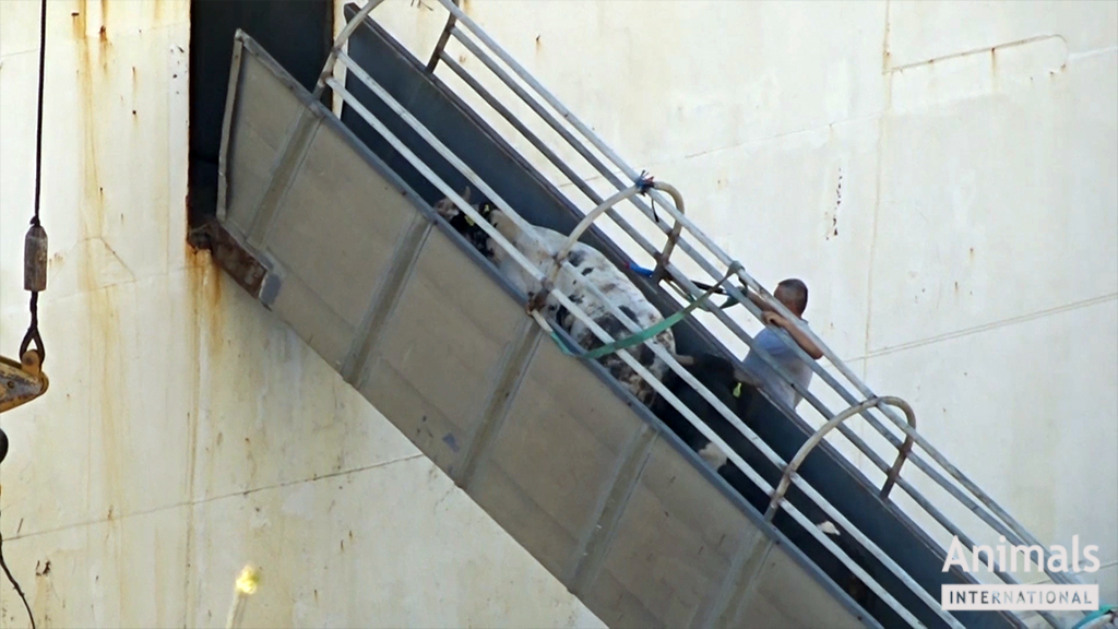 Das Leiden und Sterben der Tiere fängt mit der Minute an, wo sie auf Lastwagen gefrachtet werden, um zum Haven transportiert zu werden. Auf unzulänglichen (aber von ANSVA — der Nationalen Behörde für Veterinärwesen und Lebensmittelsicherheit “genehmigt”) — Transportwagen von Arbeitern, die oft unmenschlich (aber “qualifiziert” und “ausgebildet”) sind, zusammengepfercht, reisen sie ein bis drei Tage lang, bis sie von dern Lastwagen runter und auf Schiffe geladen werden. Obwohl sie durstig und erschöpft sind, werden sie auf grausame Art und Weise gezwungen, den steilen Laufgang des Schiffs raufzugehen – dazu werden Elektroschocker verwendet, oder es wird ihnen an vielen Stellen tief in den Korper gestossen.