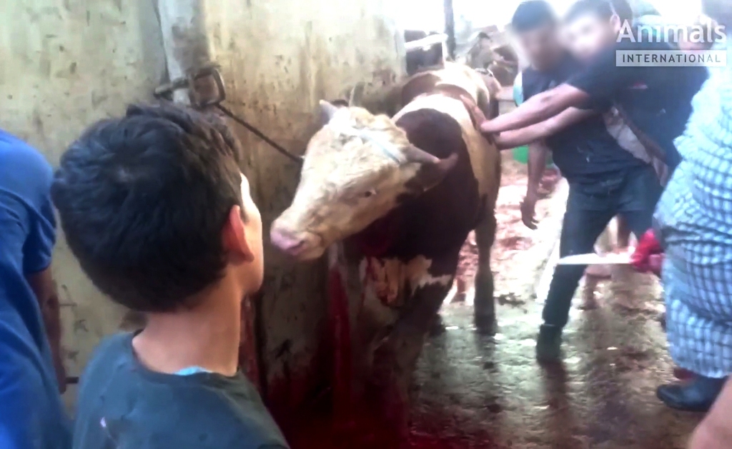 Die, die noch am leben sind – noch erschöpfter und kaum fahig, sich aufrecht zu halten – werden auf andere Lastwagen geladen und zu unautorisierten Schlachthöfen gefahren, wo sie in Metalldrehkörpern getötet werden, was enorme Qualen verursacht und in denen die Tiere einen langsamen und schmerzvollen Tod erleiden. Andere werden zu Märkten gefahren, wo sie untrainierten Leuten ausgeliefert sind und primitive Massnahmen erleiden müssen. Sie werden an einer Strassenecke festgebunden und dann einfach erstochen, bis sie nach vielen qualvollen Minuten sterben.