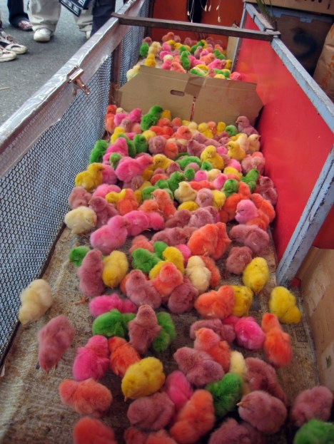 For years, mainly in Asia, it has been observed that brightly colored chicks are given away to children.