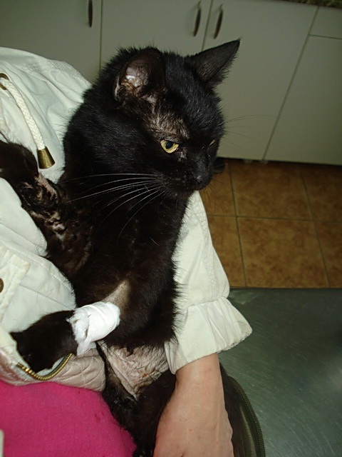 Lovely Kasper, who was saved from a shelter that burned to the ground in 2011 and has been through hell and back already is seriously ill. He’s had episodes of diarrhea every six months or so for years now and it was as though he had some gastrointestinal disorder, but when his stools have become loose and watery again, for the zillionth time, a UV scan was done and showed Kasper’s real problem is CKD (Chronic Kidney Disease). His kidneys are failing and that’s why he’s had diarrhea on and off for ages. He’s currently being fed a specific veterinary therapeutic diet with a restricted protein and phosphate content designed to support kidney function and minimize the complications of CKD.