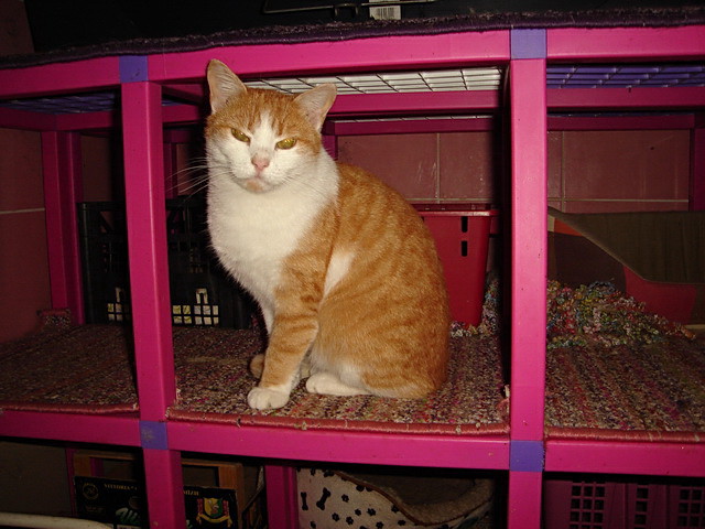 Rej is FeLV+ (feline leukaemia positive), meaning he can only be adopted to a home that has no other cats or with cats that are also FeLV+.