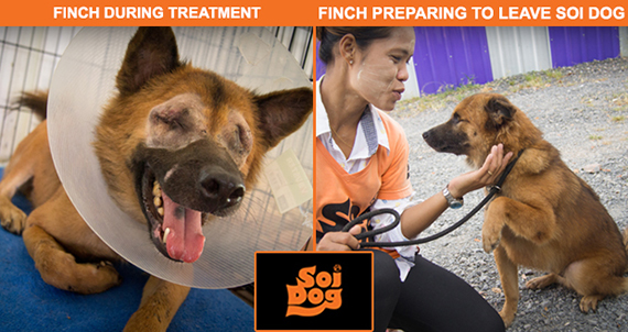 Finch’s lucky day came recently, when he left the Soi Dog shelter for his new home in Canada, where he has settled in well. Finch will never have to struggle to survive again and now knows love like he has never known before.